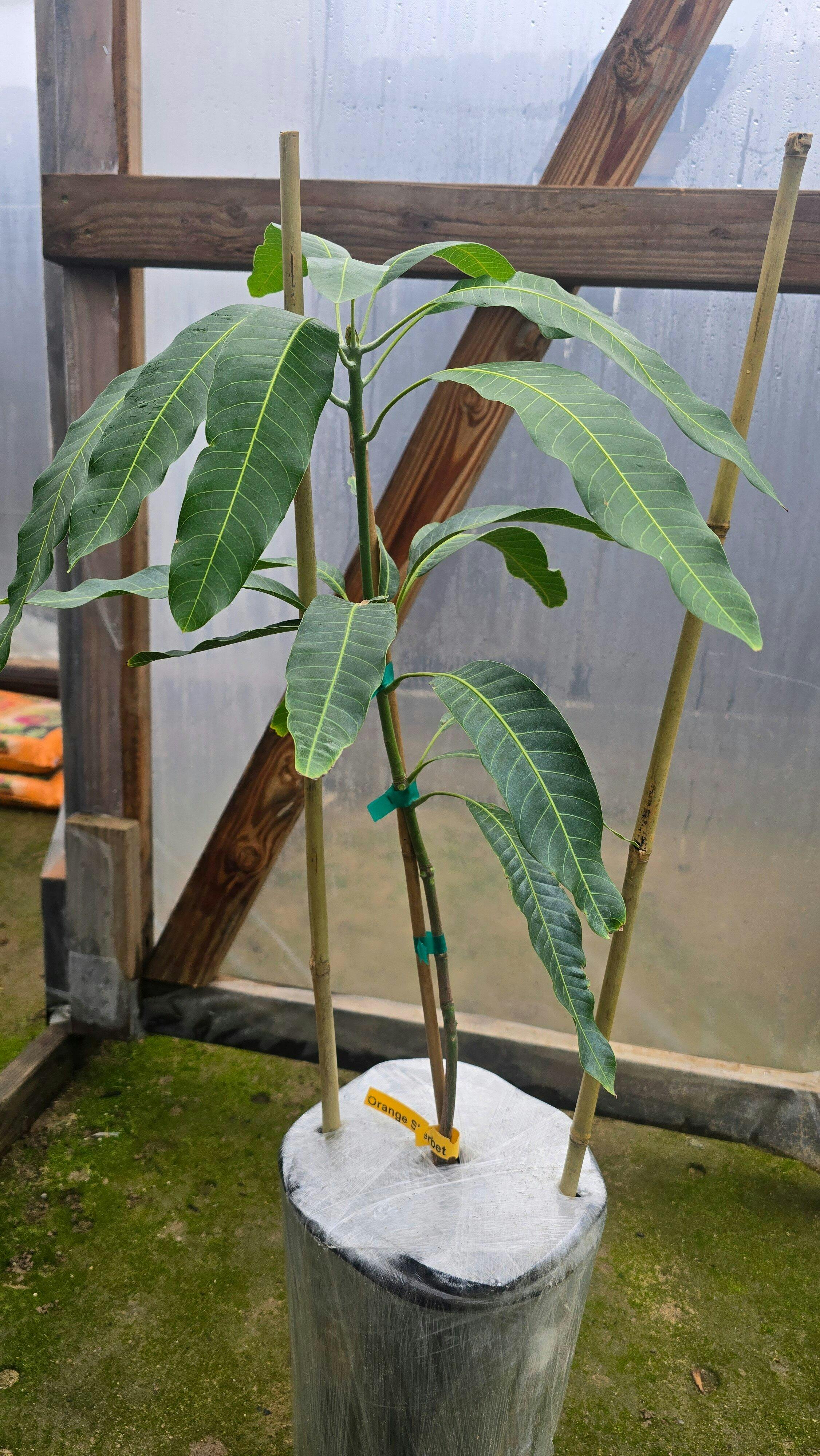 Orange Sherbet is prized for its sugary-sweet mangos and distinct hint of orange, these oval-shaped fruits have a citrus scent that will delight your senses. When ripe they skin turns into a nice shade of yellow. Having no fibers and an incredible flavor it is one of our favorites over here at Utopias Trees.