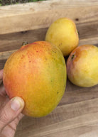 The Juicy peach mango is very different compared to other varieties. With a delightful peach flavor it makes the fruit taste amazing. A combination of Peach and mango with a hint of citrus it makes it mouthwatering. Very similar to peach cobbler but the peach flavor is stronger with juicy peach. With a yellow color when ripe and fiberless flesh it makes it very desirable.