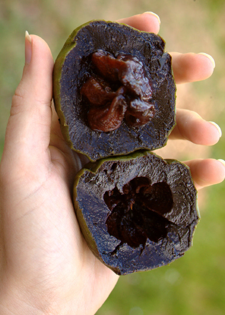 El zapote negro es una fruta única, con su complejo sabor a caramelo, miel, caqui y toques de cacao. Su textura única y cremosa la convierte en una fruta muy solicitada. ¡Parece Nutella por dentro y sabe a Nutella! Si buscas algo fuera de lo común, esta es sin duda una fruta que debes probar.