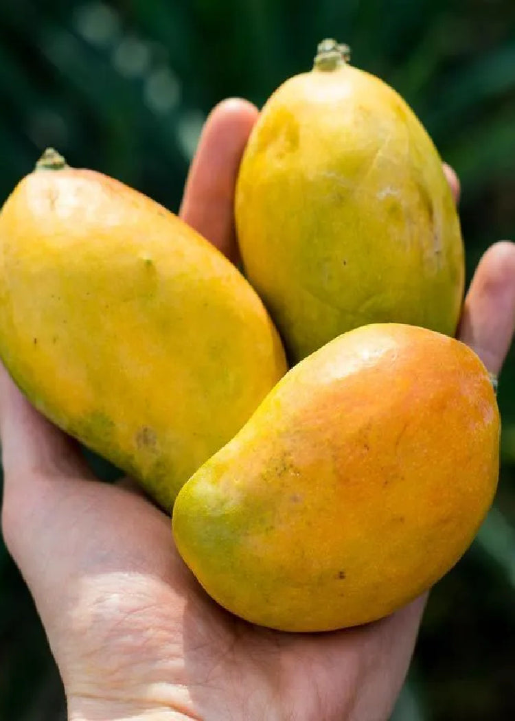 The Fruit are small oval shaped with a orange red blush when ripe. Many people love to eat mangos when they are green for a crunchy snack and this is just the variety for that. Here our customer eat them with salt and lime with chili or just plain to get that crunchy slightly acidic mango taste. Going the other route and eating them when ripe is also a great choice. They have a beautiful aroma and great taste. Being extremely juicy and sweet the only downside is the fiber but the taste, smell, and production outweigh the cons.